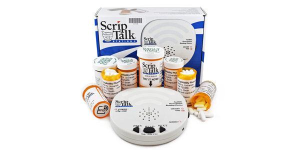 ScripTalk Prescription Reader reads the entire prescription label aloud for the visually impaired. We attach a small electronic tag to your prescription container which contains the same data that is on the printed label. You put your prescription container near the provided station and push a button and it reads the label aloud. Talk to one of our pharmacy staff to get started with this FREE program.